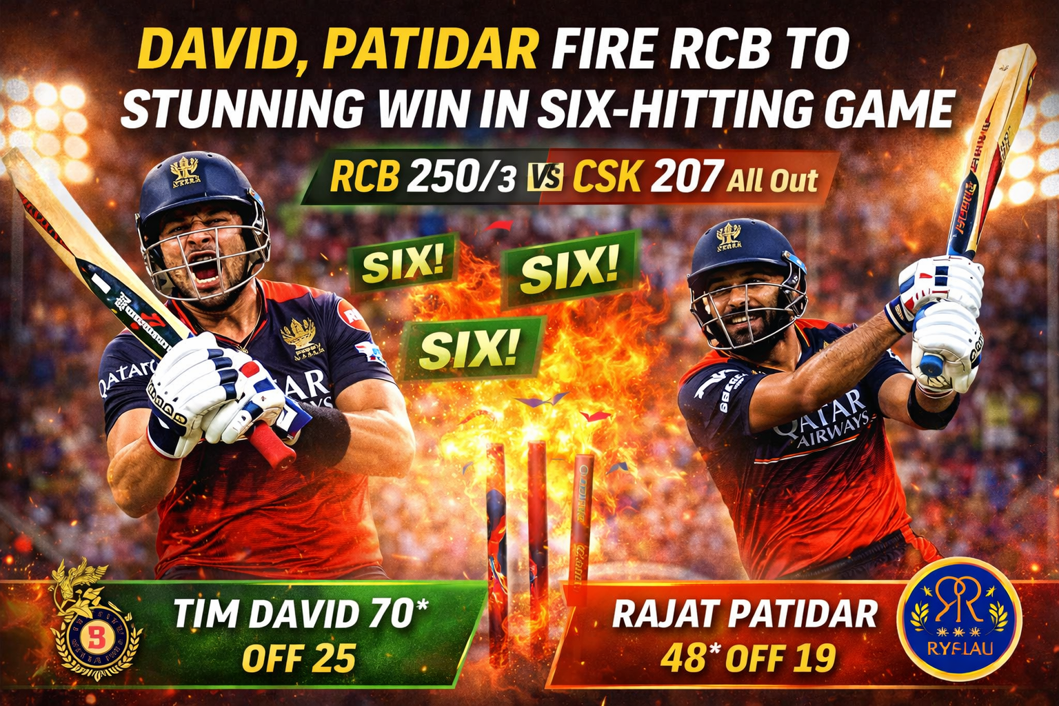 David smashed an unbeaten 70 off just 25 balls, clearing the boundary with ease and entertaining the crowd with a flurry of sixes. His power-hitting, including multiple maximums in a single over, helped RCB pile up 97 runs in the last five overs, finishing at a commanding 250/3.